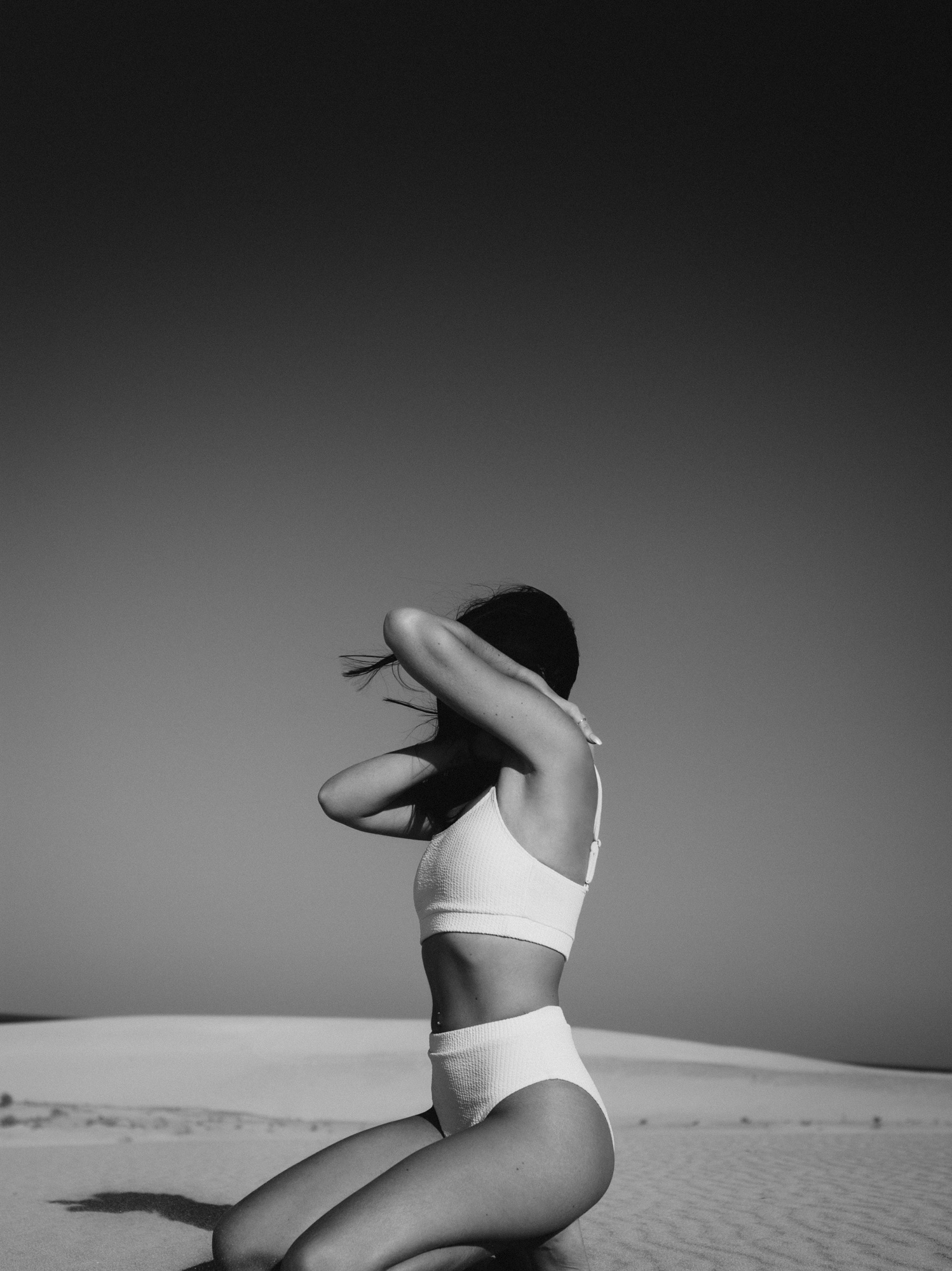 An impromptu shoot on the sand dunes in Fuerteventura with Chelsea in her white bikini.
